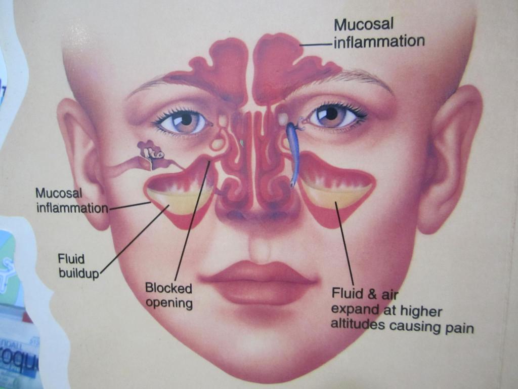 ไซนัสอักเสบ เกิดจากการอักเสบของเยื่อบุโพรงไซนัส ทำให้มีการบวมหนาตัวขึ้น มีการอุดตันของรูเปิดระบาย มีมูกหรือหนองขังแทนที่อากาศในโพรงไซนัส